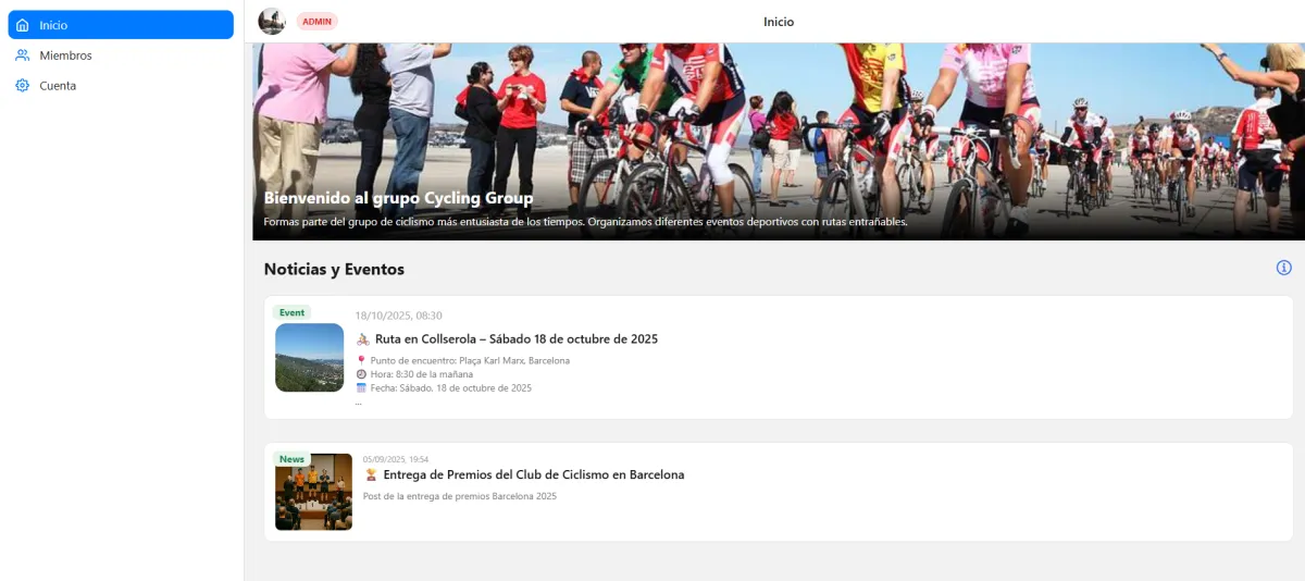 Section principale pour lesnouvelles et les mises à jour liéesau groupe et aux événements.