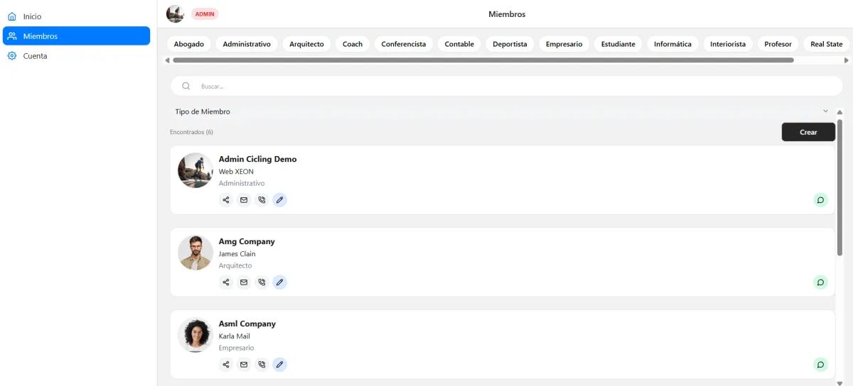 Permite a los miembros consultar fichas de otros miembros o contactar con ellos de forma fácil.